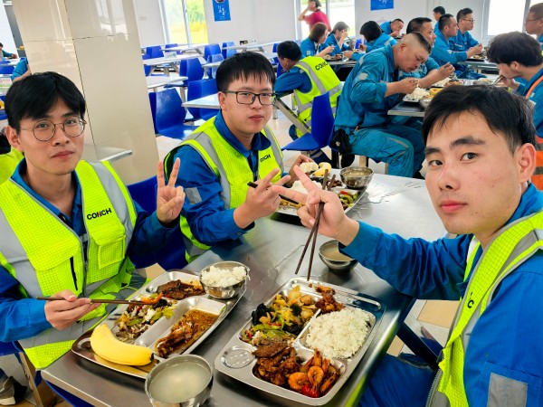 “現(xiàn)場(chǎng)的同事們干活很辛苦,看到他們吃完飯后勁頭十足,我們?cè)贌嵋仓档?!”主廚劉師傅擦著汗笑道。