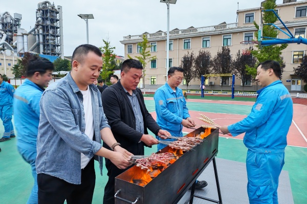 “稍微等一下,馬上就好?!薄捌匠6际亲约簯敉庑蓍e烤一下,沒想到我的手藝還派上用場了”來自安全環(huán)保處的張帆正在烤爐前給等待的職工笑著說道。本次燒烤晚會,各部門有燒烤烹飪特長的員工都是自愿報名幫忙。水泥分廠維修工段李強說:“能和大家一起分享美食,是一件開心的事”?!盁敬髱煛钡木呐腼?,“烤”出的不僅是煙火氣,更是員工之間濃濃的情誼。